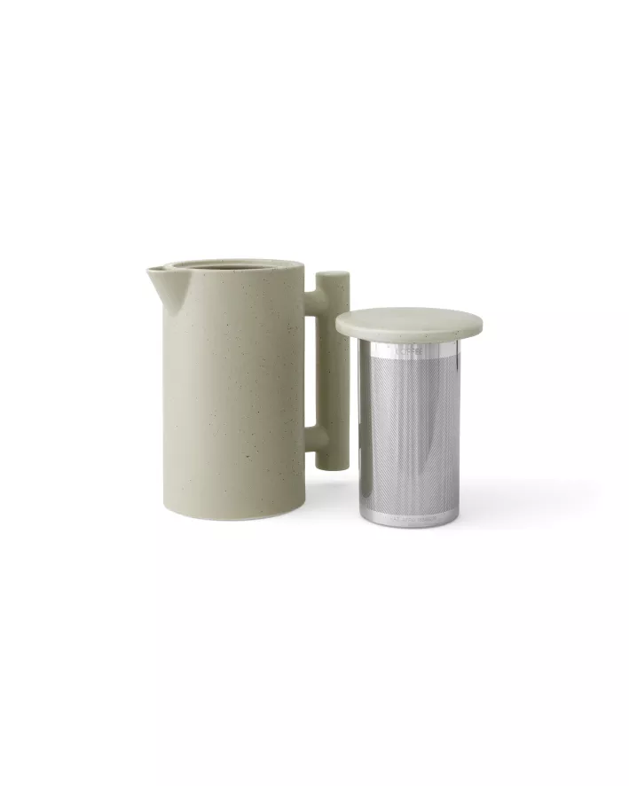 De Yana koffiepot van Audo Copenhagen is gemaakt van keramiek. De pot heeft een hoogte van 19 centimeter en een diameter van 10,7 centimeter. De pot heeft een inhoud van 1 liter. Binnenin de pot zit een filter dat je theebladen of koffiebonen in het water weekt.