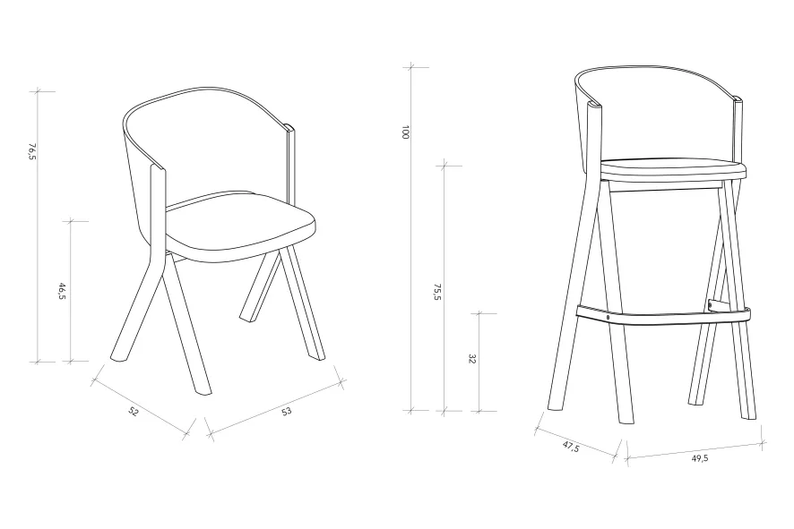 | Afmetingen | (b) 53 x (d) 52 x (h) 76,5 cm |