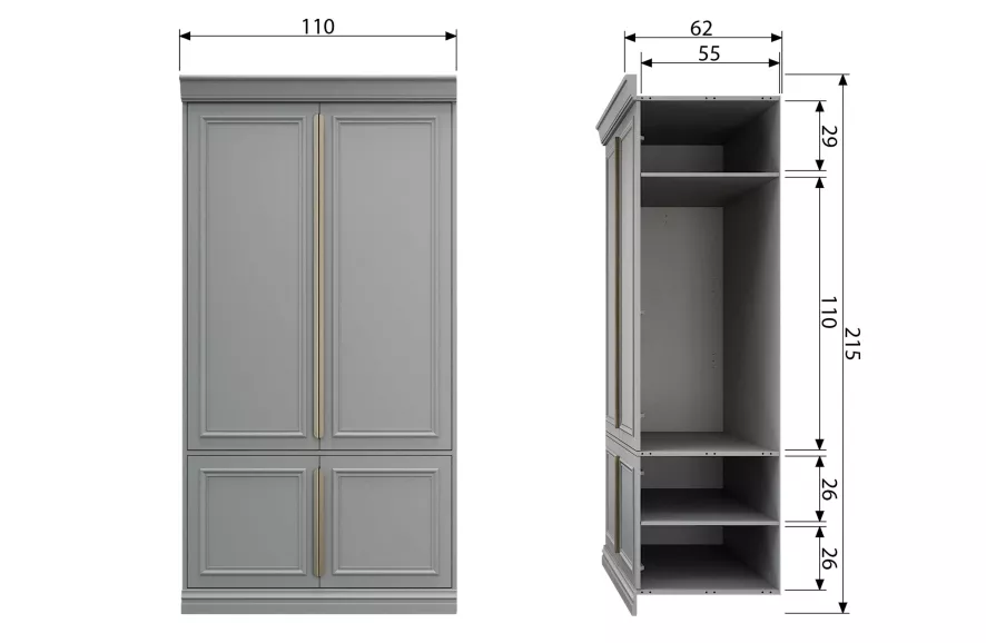 | Afmetingen | (b) 110 x (d) 62 x (h) 215 cm |