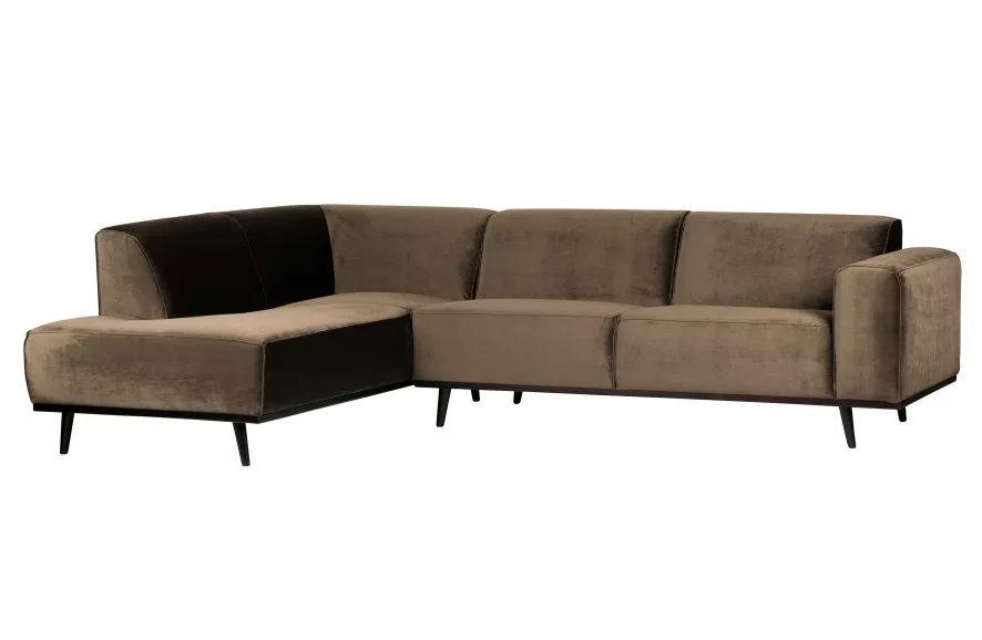 De Statement hoekbank van BePureHome is verkrijgbaar in verschillende uitvoeringen. De velvet uitvoering is gemaakt van kunststof, terwijl de lederen uitvoering bekleed is met ecoleer; leer dat zo dier-en milieuvriendelijk is geproduceerd. De bank is 77 centimeter hoog, 274 centimeter breed en 210 centimeter diep.