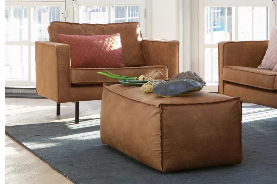 De iconische Rodeo serie maakt gebruikt van duurzaam eco-leder. Wanneer de huiden in de fabriek in patronen worden gesneden, blijven er altijd restanten over. Deze restanten worden vermalen en tot een nieuwe stof verwerkt: recycle leer. Dit product wordt vervolgens gebruikt als onderlaag voor het eco-leder van de Rodeo bank. Deze laag zorgt voor de natuurlijke en unieke uitstraling. Om het leer goed te beschermen wordt er daarna 30% polyester toegevoegd waardoor oneffenheden worden weggewerkt en het een stevige combinatiestof wordt. Op deze werkwijze worden alle restproducten gebruikt en werkt BePureHome mee aan een duurzame toekomst.