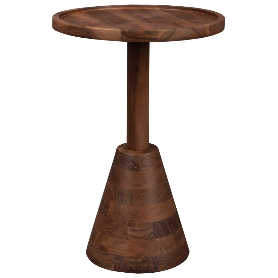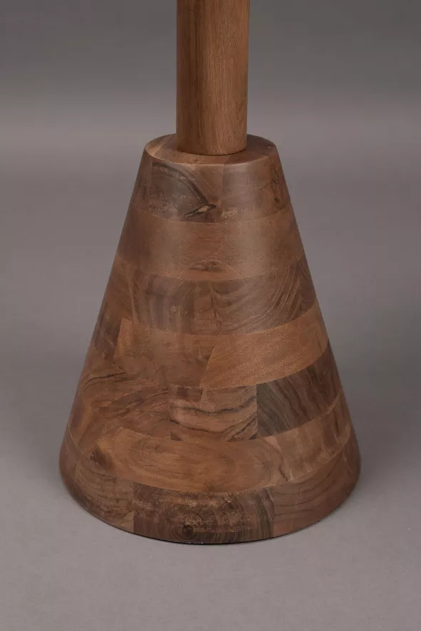 De Zion bijzettafel van Dutchbone heeft een diameter van 40 centimeter, een hoogte van 60 centimeter. De tafel heeft een gewicht van 5,5 kilogram en een maximale draagkracht van 5 kilogram. De ronde bijzettafel is gemaakt van acaciahout met een walnootkleurige finish.