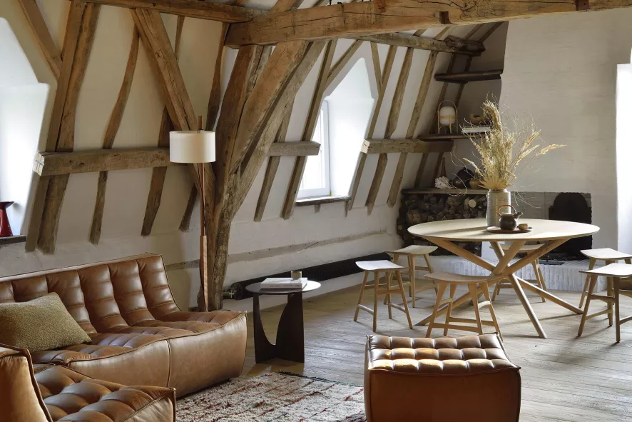 De N701 Poef van Ethnicraft is 70 centimeter breed, 70 centimeter diep en 43 centimeter hoog. De poef heeft een hardhouten frame, hoogwaardige elastische banden en PU-schuim. De poef is verkrijgbaar in verschillende soorten bekleding: 100% aniline leer of stoffering bestaande uit een samenstelling van gerecycled katoen, acryl en polyester. De poef is verkrijgbaar in verschillende kleuren. De N701 poef past perfect bij de andere N701 Sofa items die verkrijgbaar zijn in verschillende maten, deze kan je goed met elkaar combineren.