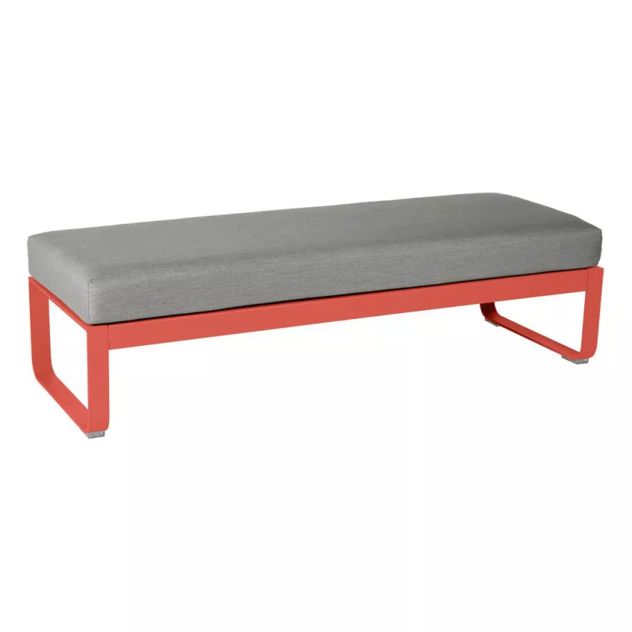 De Bellevie eetbank kussen grey taupe van het Franse merk Fermob is 148 centimeter lang, 53 centimeter breed en 41 centimeter hoog. De eettabel heeft een plaatstalen zitting en een frame gemaakt van aluminium. De eetbank weegt 21,2 kilogram. Bellevie is verkrijgbaar in verschillende kleuren. Elke kleur is kleurvast en zal daardoor niet verbleken in de zon. De eetbank heeft een goede weersbestendigheid.
