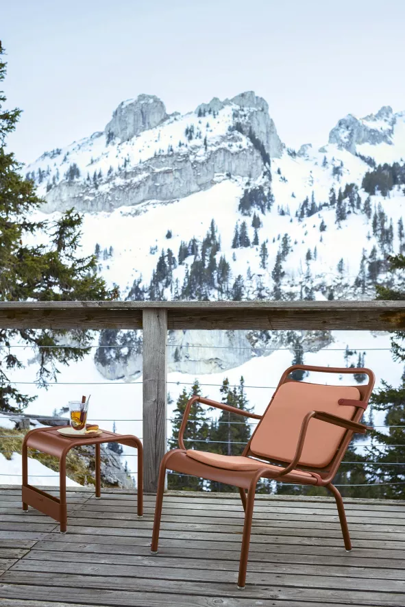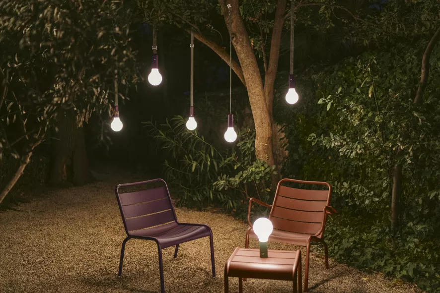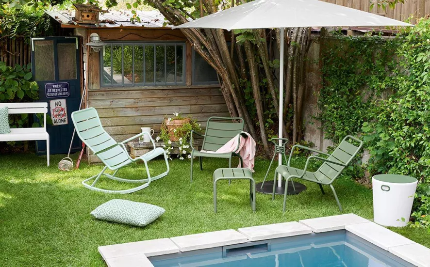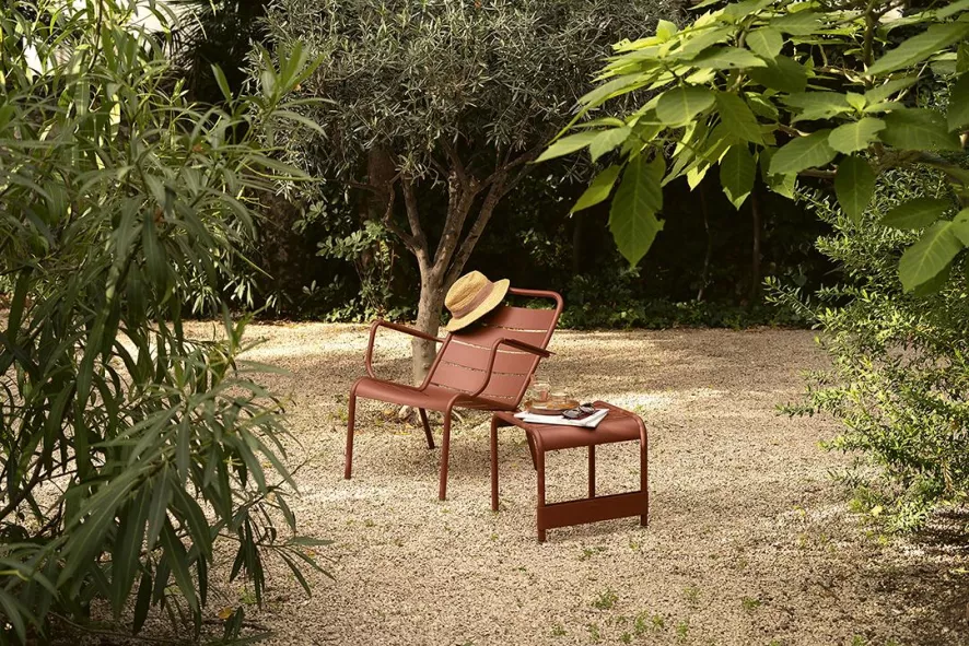 De Fermob Luxembourg voetenbank is ontworpen door Frédéric Sofia.