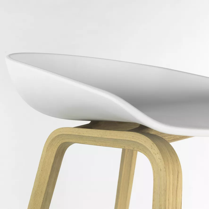 De kruk heeft een breedte van 50 centimeter, een diepte van 46 centimeter en een hoogte van 85 centimeter. De barkruk heeft een zithoogte van 75 centimeter en is daarmee geschikt voor aan een bar met een hoogte van 100 tot 105 centimeter. Deze barkruk heeft een onderstel van FSC-gecertificeerd gezeept eikenhout en is voorzien van standaard, plastic vloerbeschermers. De zitting is gemaakt van gerecycled plastic en heeft een effen kleur. De About a Stool AAS32 barkruk 75cm van Hay is in verschillende uitvoeringen verkrijgbaar.