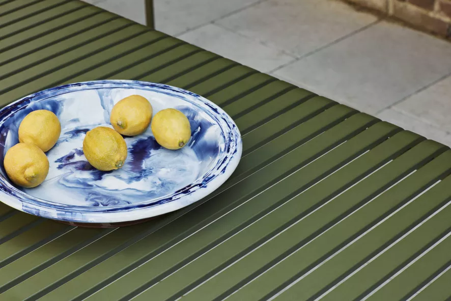 De Swirl Bowl van HAY heeft een diameter van 36 centimeter en een hoogte van 6,5 centimeter. De kom is gemaakt van terracotta en heeft een gemarmerd dessin. Het marmerdessin is met de hand geschilderd waardoor iedere Swirl Bowl uniek is. De Swirl Bowl van HAY is verkrijgbaar in 6 verschillende kleuren.