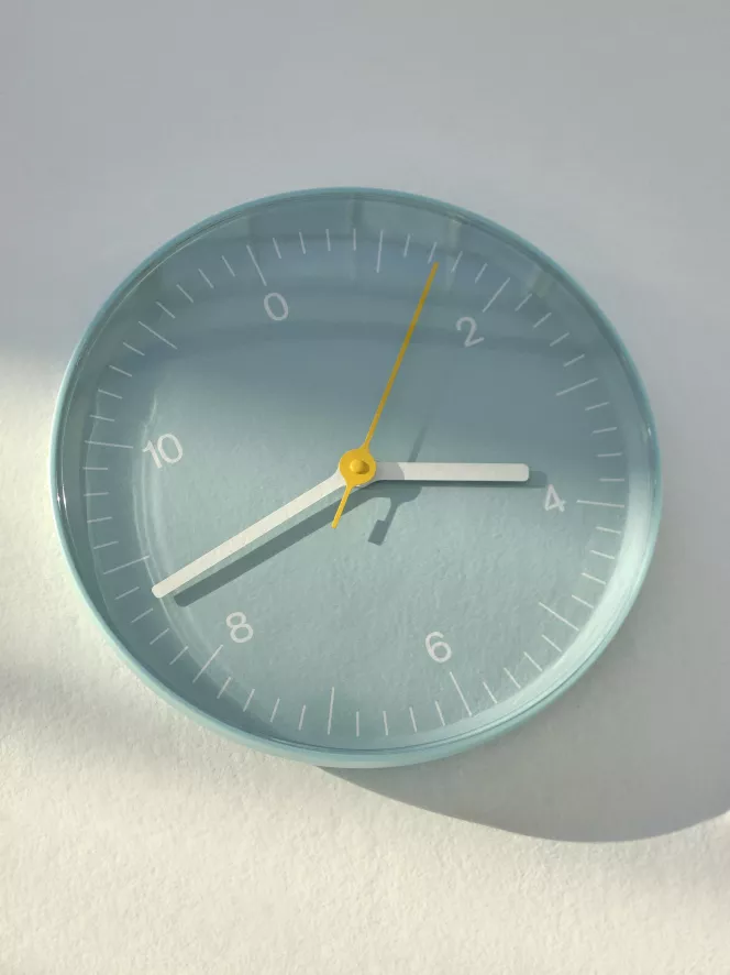 De Wall Clock klok van HAY heeft een diameter van 26 centimeter en een dikte van 3 centimeter.