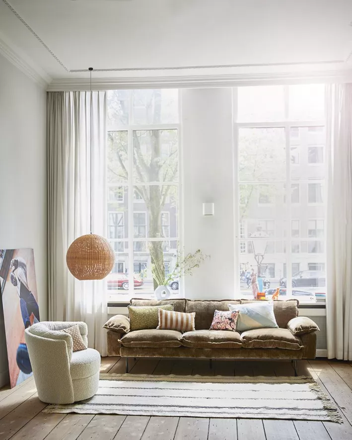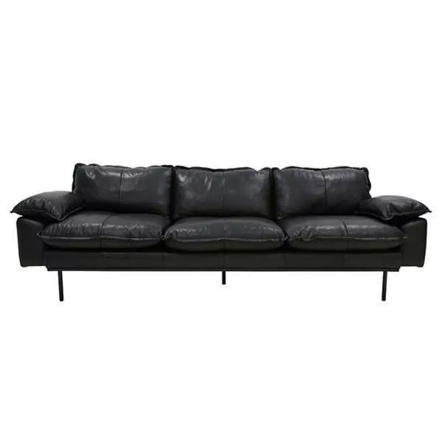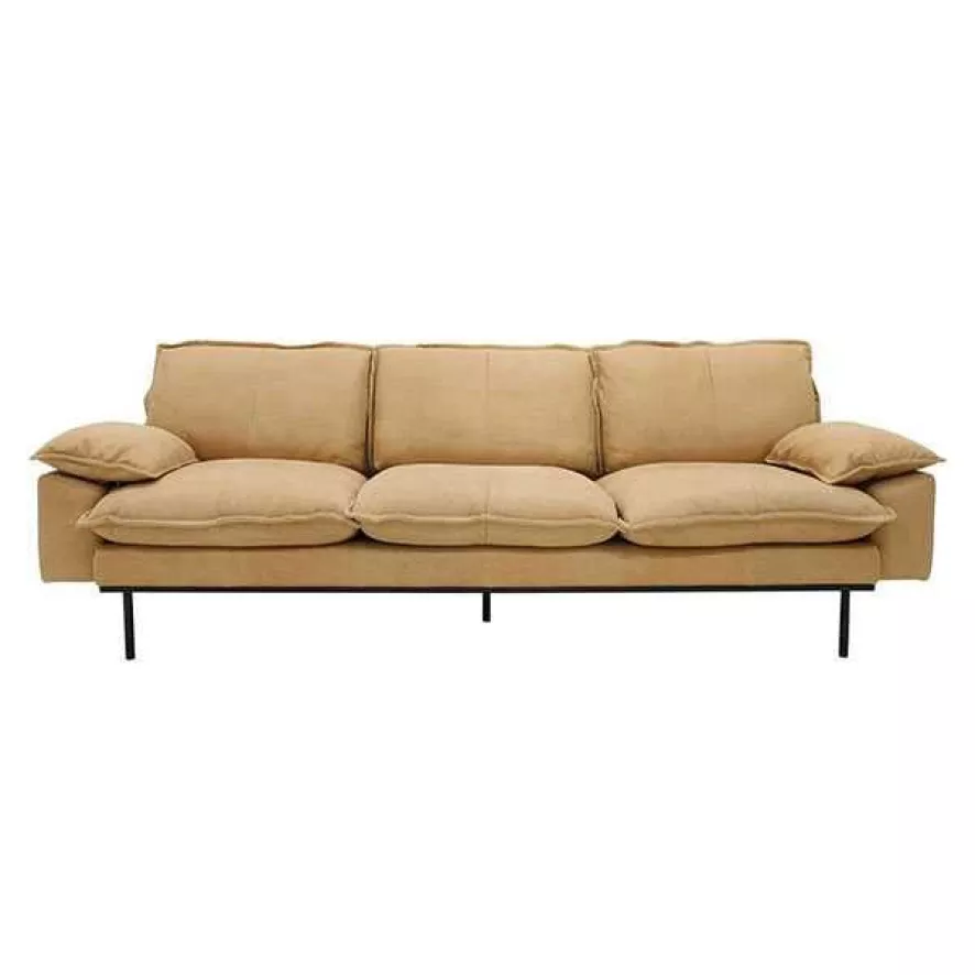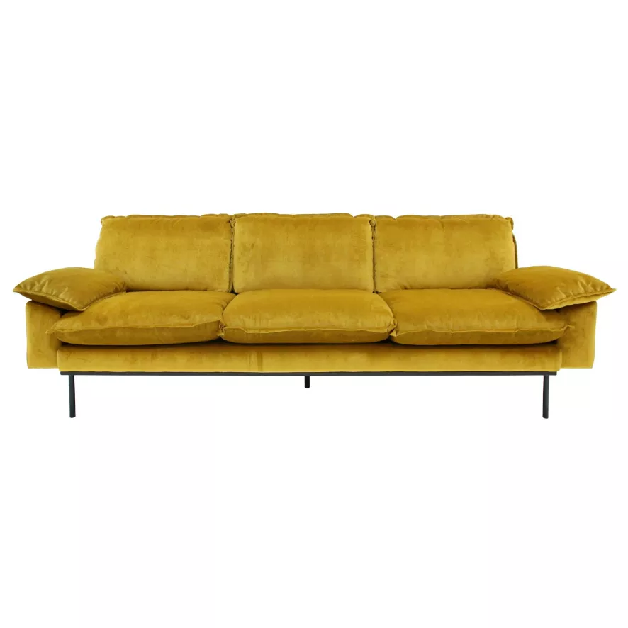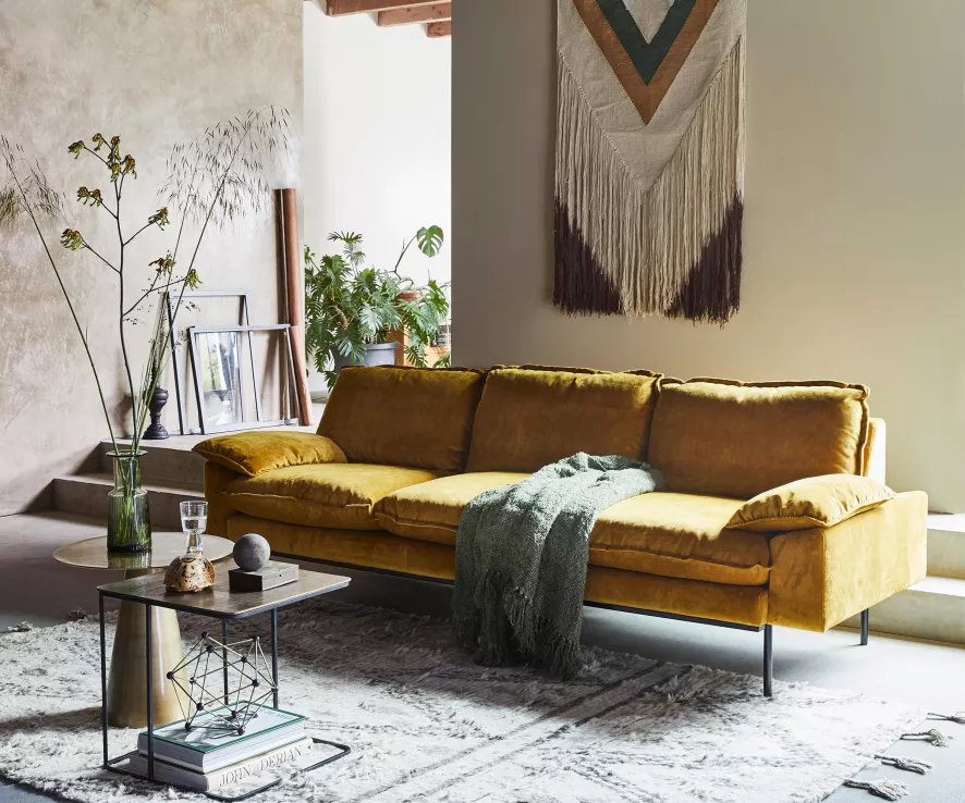 De Retro bank 4-zits van HKliving heeft een breedte van 245 centimeter, een diepte van 94 centimeter en een hoogte van 83 centimeter. De zithoogte is 46 centimeter, de zitdiepte 63 centimeter en de bank weegt 65 kilogram. De bank is gemaakt van stevig fluweel textiel van 100% polyester en heeft smalle zwart gelakte metalen poten. Je kunt voor Retro kiezen uit verschillende trendy kleuren. De bank is niet geïmpregneerd.