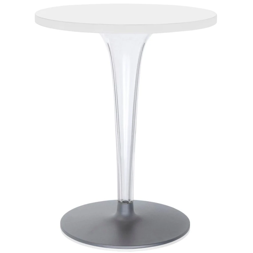 De TopTop tafel 60 van Kartell is ontworpen door Philippe Starck en Eugeni Quitlett. De tafel heeft een diameter van 60 centimeter en een hoogte van 72 centimeter. De tafel is gemaakt van Plexiglas, melamine en aluminium. De tafel is geschikt voor buiten gebruik.
