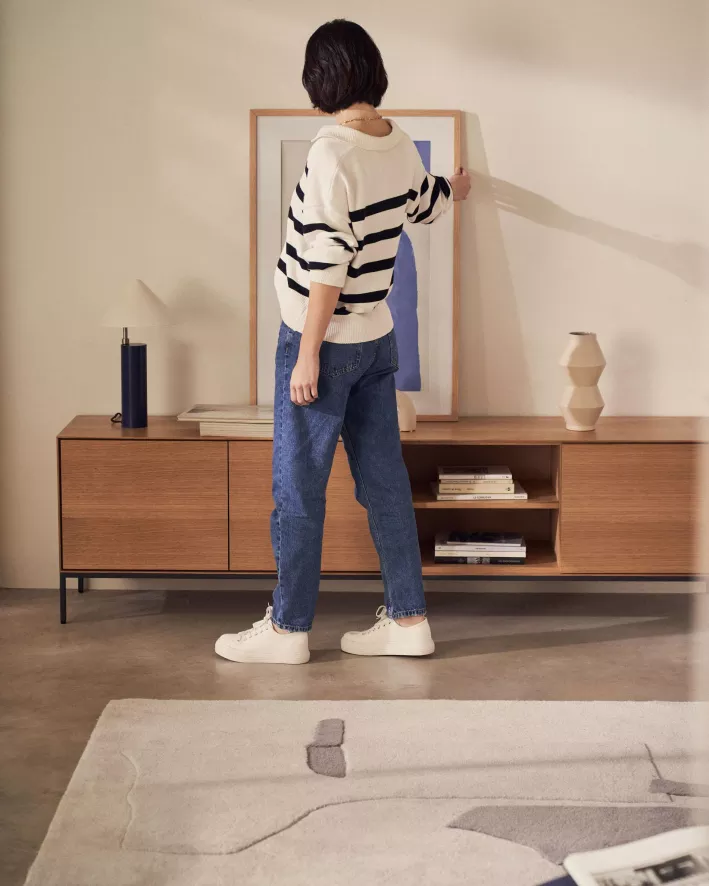 De Vedrana tv-kast 195×55 van Kave Home heeft een breedte van 195 centimeter, een diepte van 40 centimeter en een hoogte van 55 centimeter. Deze tv-kast heeft een stalen frame met verstelbare poten die voorzien zijn van plastic vloerbeschermers. De kast zelf is gemaakt van FSC-gecertificeerd hout dat met een PU-lak is afgewerkt. De kast heeft één open opbergvak en drie deurtjes die uitgerust zijn van een push-to-open systeem en een soft-close mechanisme. Achter deze deurtjes schuilen drie planken die samen zes opbergvakken creëren. De deuren zijn voorzien van een push-to-open-systeem en een soft-close mechanisme. Het open opbergvak is voorzien van een kabelgoot. De tv-kast heeft een gewicht van 51,5 kilogram en een maximum draaggewicht van 60 kilogram. De tv-kast is geschikt voor een televisie van maximaal 150 centimeter. De Vedrana tv-kast 195×55 van Kave Home is in verschillende formaten verkrijgbaar en in een eikenhouten uitvoering of een walnoothouten uitvoering.