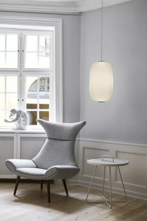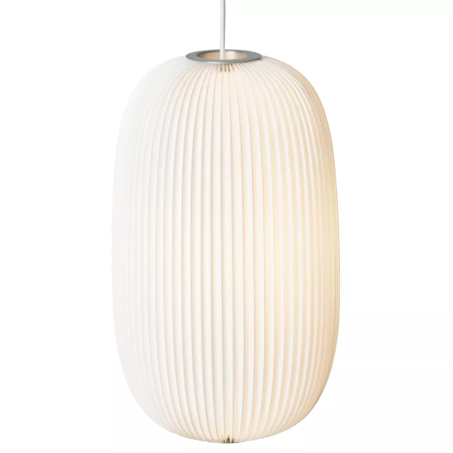De Lamella 133 hanglamp heeft een diameter van 30 centimeter en een hoogte van 52 centimeter. Lamella is gemaakt van speciaal lampenkap folie, waarmee de lampenkap door middel van de PLICA techniek wordt geproduceerd. De lamp heeft een E27 fitting, geschikt voor een LED lichtbron van 15W. De lichtbron wordt niet meegeleverd. De witte Lamella kap is beschikbaar met een goud of aluminium detail. In de Lamella serie van LE KLINT vind je meerdere varianten van dit moderne, en toch tijdloze design.