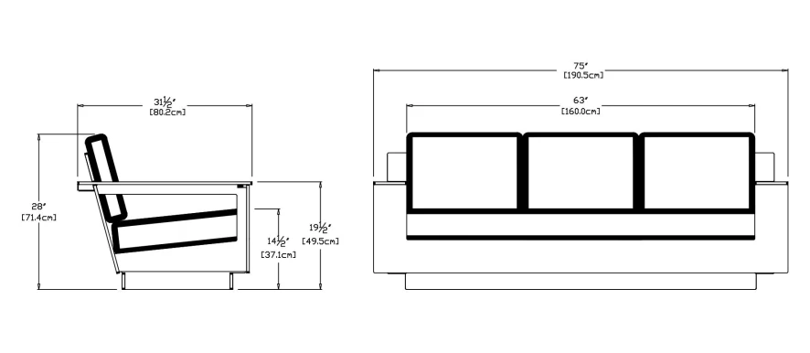 | Afmetingen | (l) 80 x (b) 190,5 x (d) 80,2 x (h) 71,4 cm |