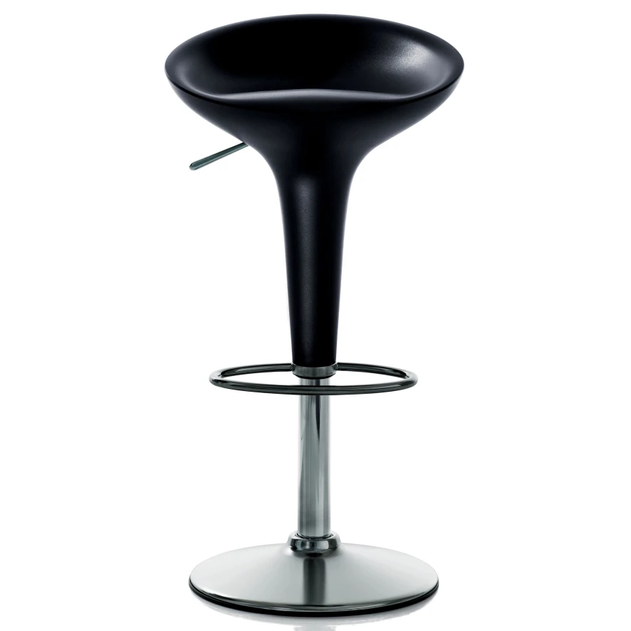 De Magis Bombo Stool barkruk is 44 centimeter breed en 37 centimeter diep. De hoogte is verstelbaar van 61 tot 85 centimeter, de zithoogte is tussen de 50 en de 74 centimeter. Handig om te weten: een barkruk van 75 centimeter hoog is ideaal voor een barhoogte tussen de 100 en de 105 centimeter. Een barkruk van 65 centimeter is juist zeer geschikt voor een barhoogte van 90 tot 95 cm. De basis van de stoel is van verchroomd staal en de zitting is van ABS (kunststof). De Magis Bombo Stool barkruk is verkrijgbaar in vijf kleuren: bruin, grijs antraciet, ivoor, rood en wit.