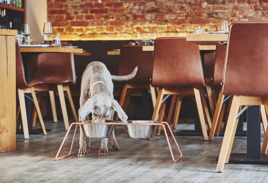 De Cena hondenvoerbak medium van MiaCara is 60,7 centimeter lang, 25,2 centimeter breed en 16,8 centimeter hoog. De hondenvoerbak is gemaakt van gepoedercoat metaal. De Cena hondenvoerbak heeft twee bakken van roestvrijstaal met beide een inhoud van 1,3 liter en plastic poten. De diameter van de binnenkant van een bak is 17 centimeter. De bakken zijn vaatwasserbestendig. Onder de bakken zit een siliconen ring die ervoor zorgt dat de bakken niet rinkelen. De Cena hondenvoerbak is verkrijgbaar in verschillende kleuren en maten. De Cena hondenvoerbak medium is geschikt voor middelgrote honden als een Beagle, Collie of Cocker Spaniel.
