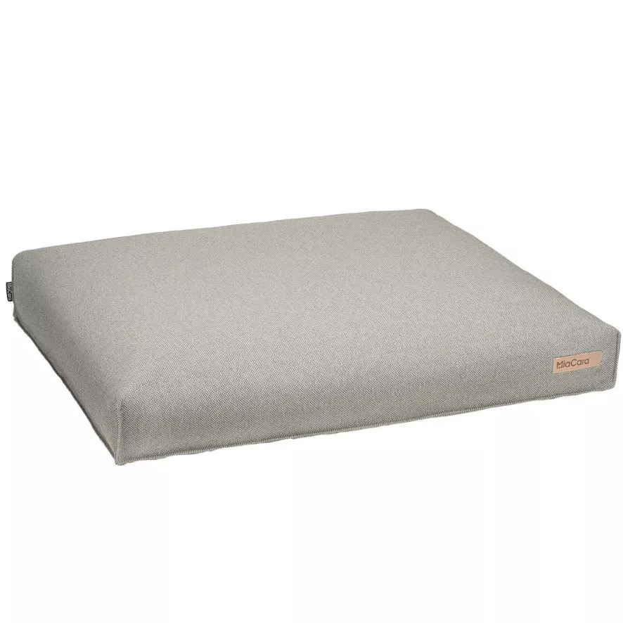 Het MiaCara Mare hondenkussen large is ontworpen door MiaCara in samenwerking met het Seaqual Initiative. Het Mare hondenkussen large van MiaCara heeft een lengte van 120 centimeter, een breedte van 90 centimeter en een hoogte van 12 centimeter. Het kussen heeft een afneembare en wasbare hoes die voor 100% uit gerecycled oceaanplastic bestaat. De hoes draagt het Seaqual Yarn duurzaamheidslabel. De hoes mag in de wasmachine gewassen worden op een temperatuur van 60 graden Celsius of mag met stoom gereinigd worden. De hoes dient na reiniging aan de lucht gedroogd te worden en mag niet in de droogtrommel. Het kussen is ook voorzien van een binnen kussen. De hoes hiervan is gemaakt van katoen en polyester. De vulling van het kussen is gemaakt van gerecycled polyurethaanschuim dat stabiel, duurzaam, elastisch en hypoallergeen is. Het binnen kussen mag met een mild wasmiddel, met de fijne was, in de wasmachine gewassen worden op maximum temperatuur van 60 graden Celsius. Het kussen dient hierna aan de lucht gedroogd te worden. Dit hondenkussen is geschikt voor Berner sennenhonden, Boxers, Golden Retrievers, Husky’s, Labradors, Rhodesian Ridgebacks, Ierse setters, Weimarse staande honden, Magyar Vizsla’s en andere grote hondenrassen. Het Mare hondenkussen large van MiaCara is in verschillende kleuren en formaten verkrijgbaar.