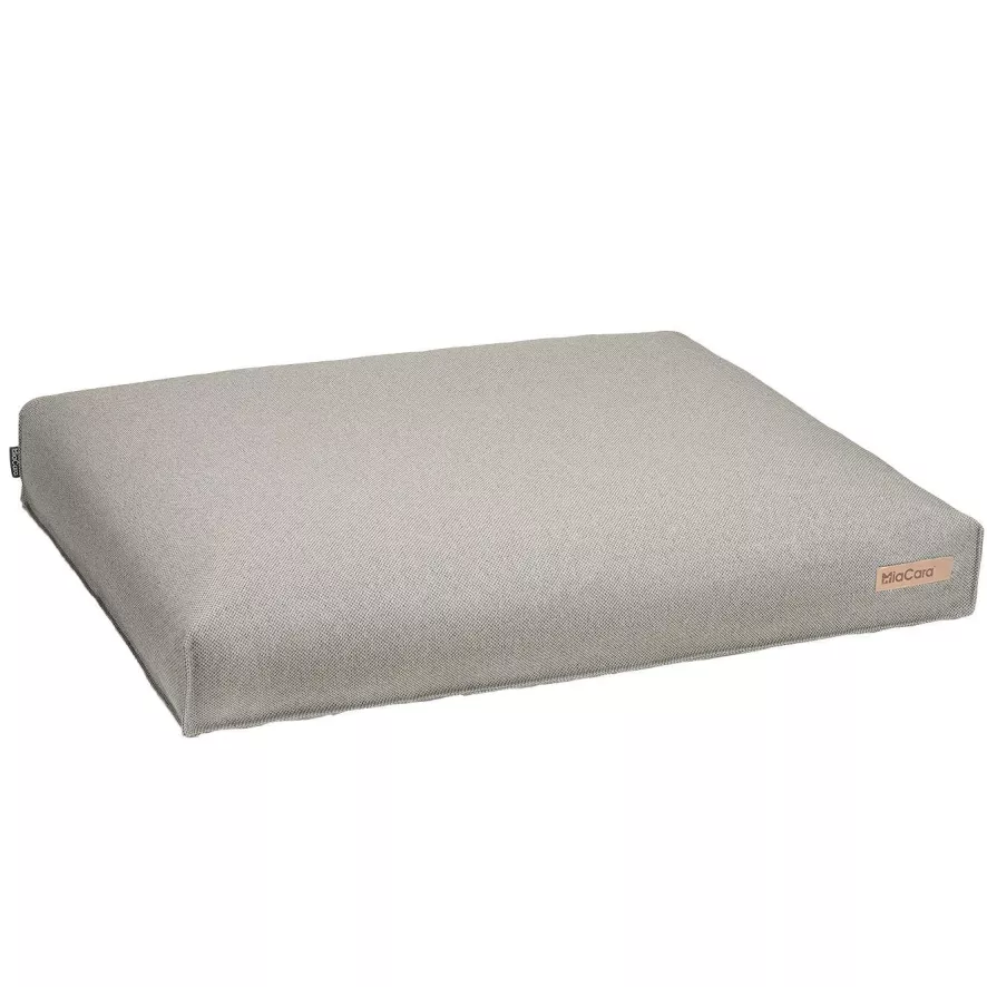Het MiaCara Mare hondenkussen medium is ontworpen door MiaCara in samenwerking met het Seaqual Initiative. Het Mare hondenkussen medium heeft een lengte van 100 centimeter, een breedte van 75 centimeter en een hoogte van 12 centimeter. Het kussen heeft een afneembare en wasbare hoes die voor 100% uit gerecycled oceaanplastic bestaat. De hoes draagt het Seaqual Yarn duurzaamheidslabel. De hoes mag in de wasmachine gewassen worden op een temperatuur van 60 graden Celsius of mag met stoom gereinigd worden. De hoes dient na reiniging aan de lucht gedroogd te worden en mag niet in de droogtrommel. Het kussen is ook voorzien van een binnen kussen. De hoes hiervan is gemaakt van katoen en polyester. De vulling van het kussen is gemaakt van gerecycled polyurethaanschuim dat stabiel, duurzaam, elastisch en hypoallergeen is. Het binnen kussen mag met een mild wasmiddel, met de fijne was, in de wasmachine gewassen worden op maximum temperatuur van 60 graden Celsius. Het kussen dient hierna aan de lucht gedroogd te worden. Dit hondenkussen is geschikt voor Beagles, Collies, Cocker Spaniels, Ierse Setters, Schnauzers, en andere middelgrote hondenrassen. Het Mare hondenkussen medium van MiaCara is in verschillende kleuren en formaten verkrijgbaar.