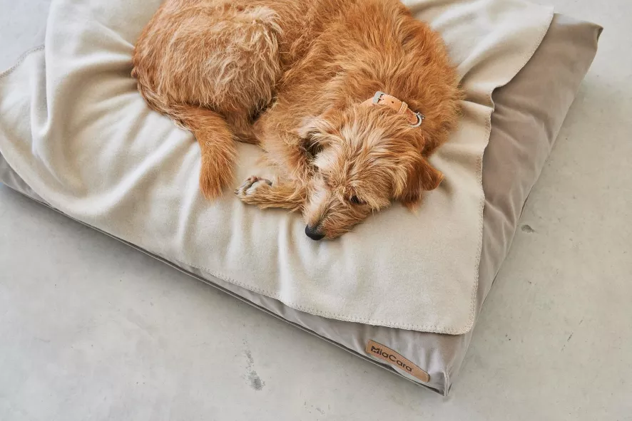 Het Velluto hondenkussen large van MiaCara heeft een lengte van 120 centimeter, een breedte van 90 centimeter en een hoogte van 12 centimeter. Dit hondenkussen heeft een afneembare en wasbare hoes die voor 60% uit katoen en voor 40% uit polyester bestaat. Deze hoes mag op 40 graden Celsius in de wasmachine gewassen worden of gestoomd worden. Na het reinigen dient de hoes aan de lucht gedroogd te worden en mag niet gestreken worden. Het binnen kussen is gemaakt van katoen en heeft een vulling van stabiel, duurzaam en hypoallergeen polyurethaan. Dit binnen kussen mag met een mild wasmiddel tot 60 graden Celsius in de wasmachine gewassen worden. Na het reinigen dien je dit binnen kussen goed te centrifugeren en daarna aan de lucht te drogen. Het binnen kussen mag eventueel tot 60 graden Celsius in de droogtrommel gedroogd worden. Let hierbij wel op dat het niet te droog wordt. Dit hondenkussen is geschikt voor Berner sennenhonden, Boxers, Golden Retrievers, Husky’s, Labradors, Rhodesian Ridgebacks, Ierse setters, Weimarse staande honden, Magyar Vizsla’s en andere grote hondenrassen. Het Velluto hondenkussen large van MiaCara is in verschillende kleuren en formaten verkrijgbaar.