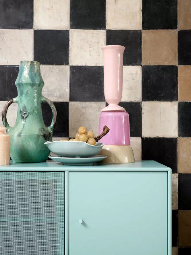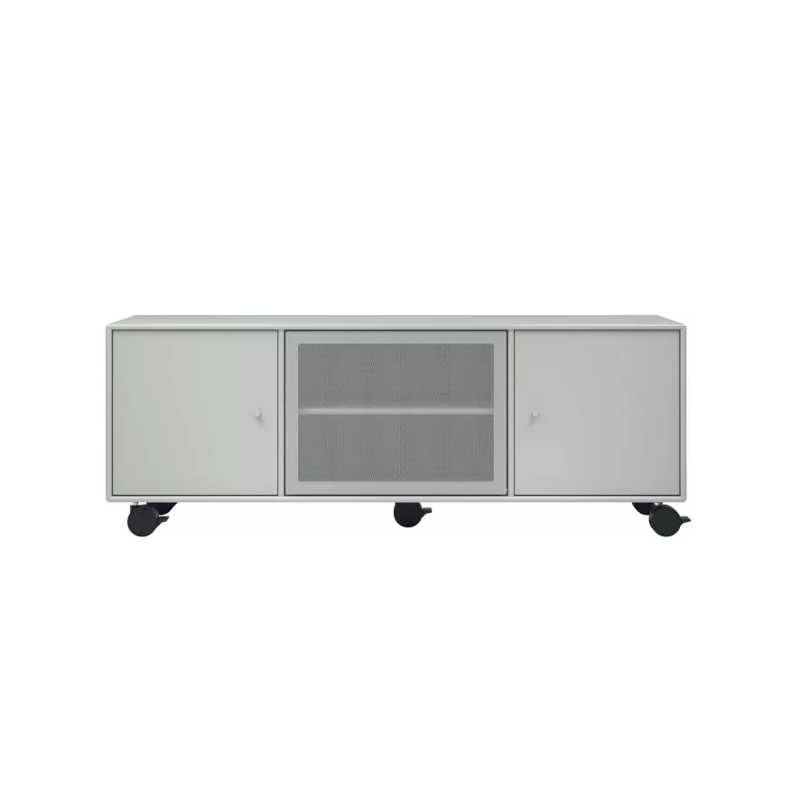 De Octave I TV-kast van Montana is gemaakt van MDF en staal. Deze TV-kast is 116,4 centimeter lang, 48 centimeter hoog en 38 centimeter diep. In het midden van deze TV-kast bevindt zich een inschuifbare deur. De ruimte achter deze deur wordt in tweeën gedeeld door een plankje. De achterwand is voorzien van een kabelgat. De middensectie van deze TV-kast wordt aan beide zijden vergezeld door een kastje met een houten klapdeur. Je kunt ervoor kiezen om deze kast middels een rails te bevestigen aan de muur, maar hij kan natuurlijk ook prima op de grond staan. De TV-kast wordt geleverd met metalen pootjes. Op aanvraag zijn wieltjes of houten plinten beschikbaar. Deze kast is verkrijgbaar in verschillende kleuren.