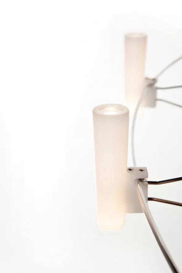 Coppélia hanglamp LED small van Moooi bestaat uit een frame van roestvrij staal, met verschillende lampjes gemaakt van kunststof (polycarbonaat). De lamp heeft een diameter van 68 centimeter en een hoogte van 42,5 centimeter. De 36 meegeleverde LED-lichtbronnen zijn geïntegreerd en verspreiden een warm wit licht. Het snoer heeft een lengte van 400 centimeter. Je kunt de lamp aansluiten op een dimmer.