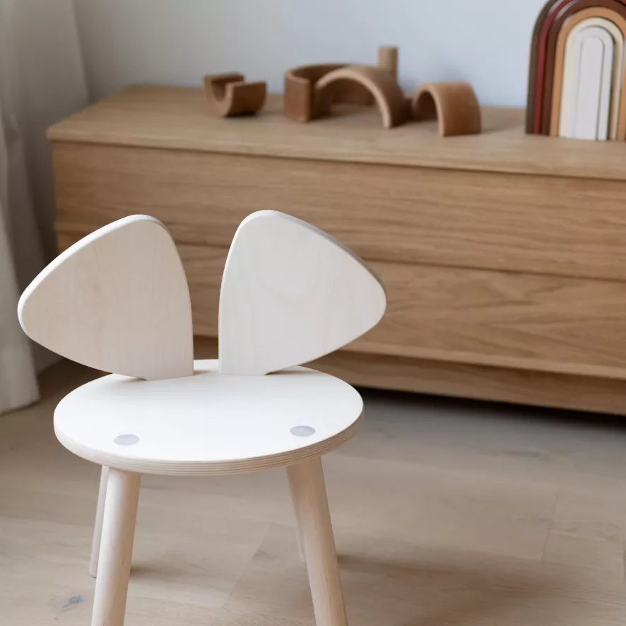 De Mouse kinderstoel van Nofred is 42,5 centimeter breed, 28 centimeter diep en 46.4 centimeter hoog. De zithoogte is 27 centimeter. De stoel is gemaakt eiken hout. Je kan de stoel schoonmaken met een schone, vochtige doek. Gebruik milde zeep om vlekken te verwijderen. Vermijd schrobben en producten met ammoniak. De Mouse kinderstoel is verkrijgbaar in verschillende kleuren en is geschikt voor kinderen van 2 tot 5 jaar.