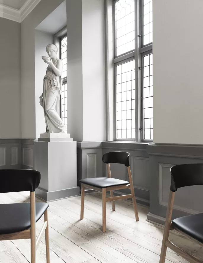 De Normann Copenhagen Herit Oak stoel gestoffeerd is ontworpen door Simon Legald.