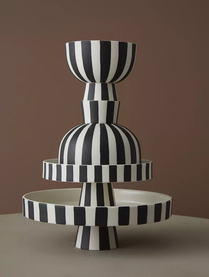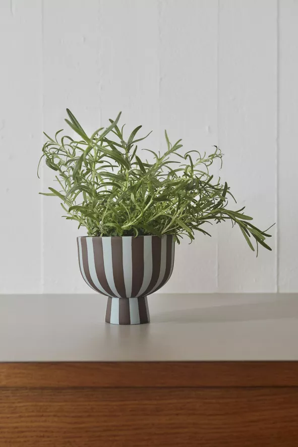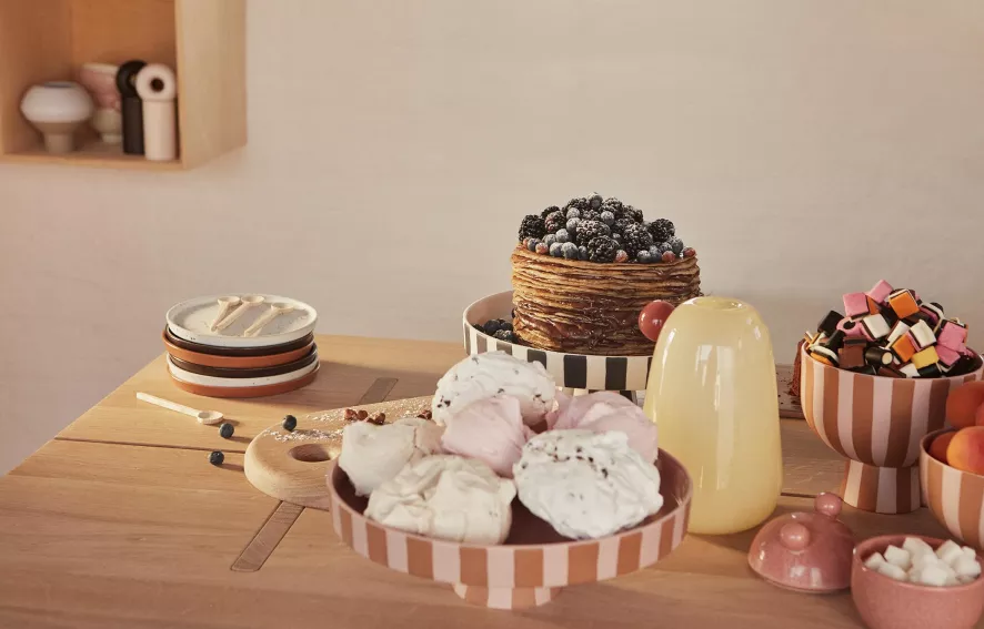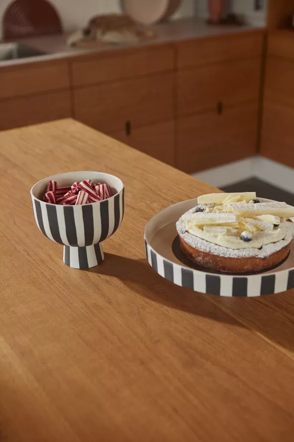 De Toppu schaal op voet Ø15 van OYOY heeft een diameter van 15 centimeter en een hoogte van 13 centimeter.