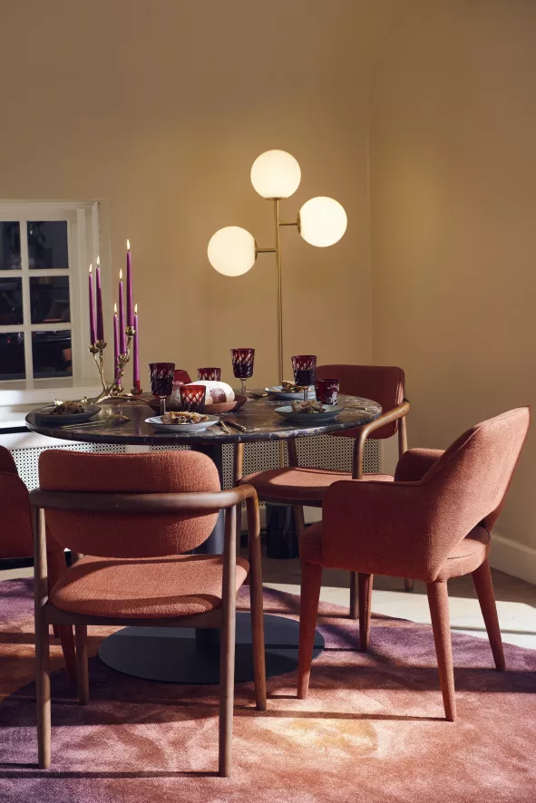 De Cosy stoel van pols potten is 57 centimeter breed, 63 centimeter diep en 83 centimeter hoog. De zithoogte is 48 centimeter, de zitdiepte is 50 centimeter en de armleuning is 67 centimeter hoog. De stoel is gemaakt van 100% polyester met een metalen frame en gestoffeerde poten. De stoel weegt 8,9 kilogram en is verkrijgbaar in verschillende kleuren.