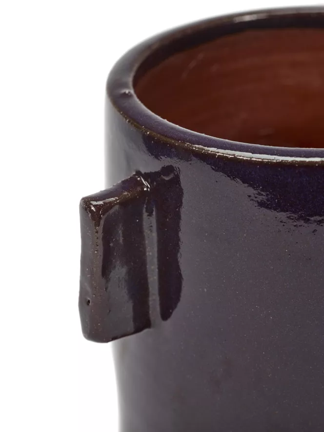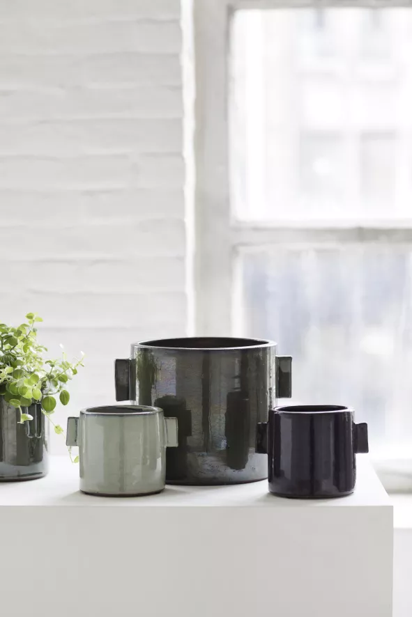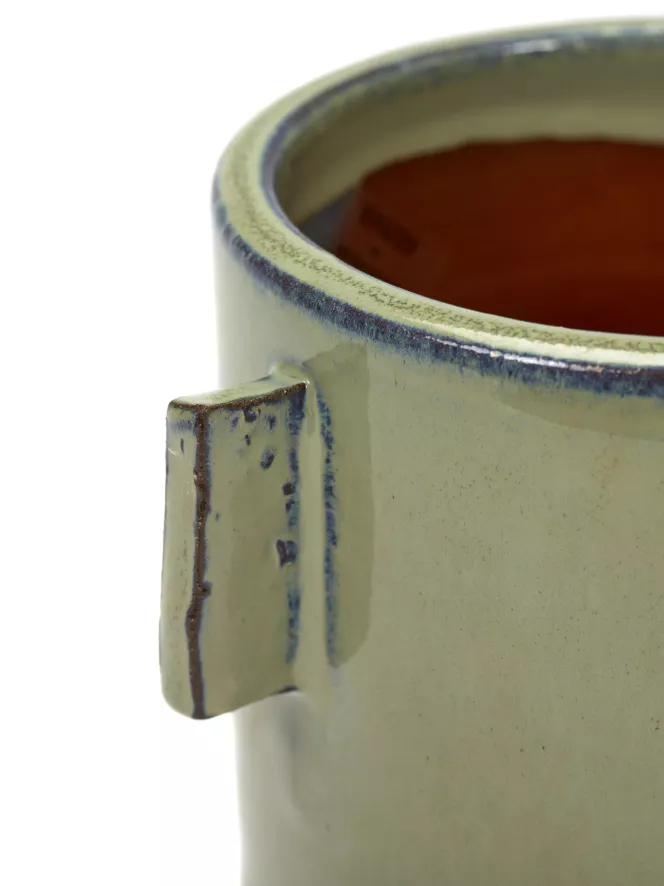 De Urban Jungle by Marie Michielssen bloempot small glazed van Serax heeft een lengte van 14,5 centimeter, een breedte van 11 centimeter, een hoogte van 10,5 centimeter en een gewicht van 0,66 kilogram. De pot is gemaakt van keramiek heeft een geglazuurde afwerking. Doordat de pot bedoeld is als sierpot en geen opening onderaan heeft voor afwatering, raadt Serax aan niet rechtstreeks in de pot te planten. Plaats de plant in een plastic pot + schoteltje of gebruik een plastic zak aan de binnenzijde van de bloempot. De Urban Jungle bloempot is verkrijgbaar in verschillende kleuren.