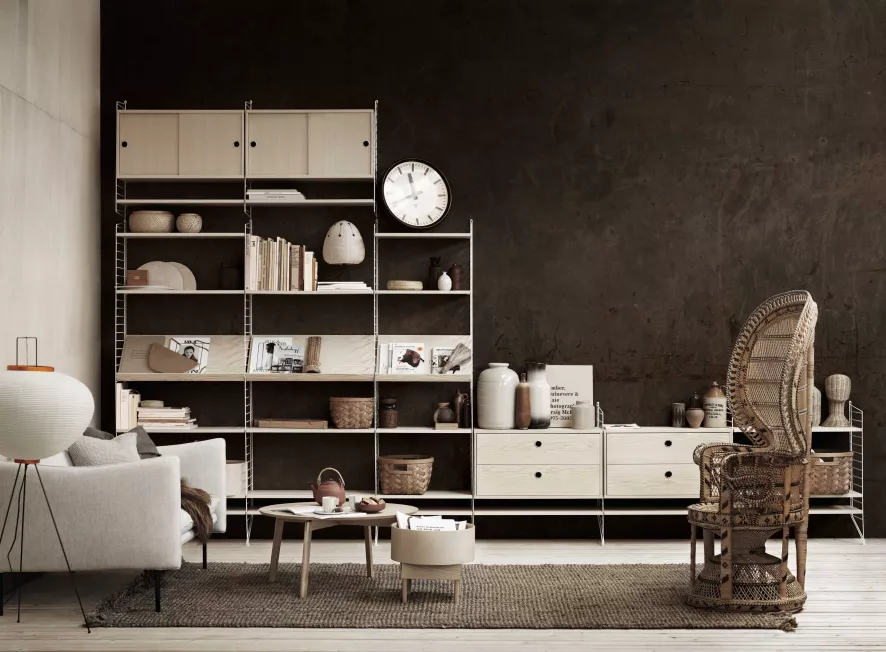 Dit is de Kast met twee lades 58x30x42 cm van String. De kast heeft een breedte van 58centimeter en een diepte van 30 centimeter. De kast is leverbaar in verschillende varianten.
