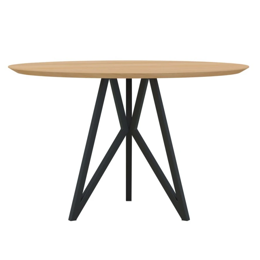 De Butterfly Tripod tafel 100 van Studio HENK heeft een eiken tafelblad met een onderstel van kokerstaal. De Butterfly tafel heeft een diameter van 100 centimeter en is 74 centimeter hoog. Het tafelblad is 3 centimeter dik. Het onderstel kan in wit of zwart staal. Het tafelblad kan geleverd worden in verschillende afmetingen en kan in naturel lak, hardwax olie, witte lak of zwarte lak. Voor de rand van het blad kan je kiezen uit rechte hoeken of een speciale verjongd afgeronde hoek (schuin afgesneden). Ten slotte kan je ook kiezen voor een rechthoekig of ovaal tafelblad.
