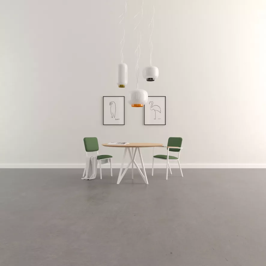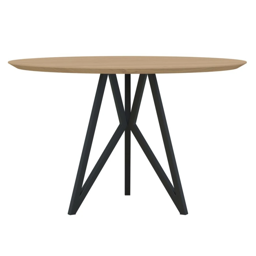 De Butterfly Tripod tafel 120 van Studio HENK heeft een eiken tafelblad met een onderstel van kokerstaal. De Butterfly tafel heeft een diameter van 120 centimeter en is 74 centimeter hoog. Het tafelblad is 3 centimeter dik. Het onderstel kan in wit of zwart staal. Het tafelblad kan geleverd worden in verschillende afmetingen en kan in naturel lak, hardwax olie, witte lak of zwarte lak. Voor de rand van het blad kan je kiezen uit rechte hoeken of een speciale verjongd afgeronde hoek (schuin afgesneden). Ten slotte kan je ook kiezen voor een rechthoekig of ovaal tafelblad.