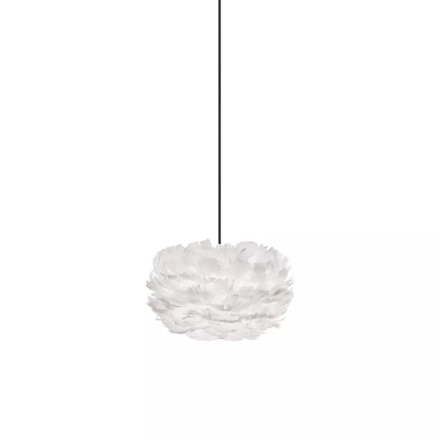 De Eos Micro hanglamp van Umage is met een diameter van 22 centimeter en een hoogte van 16 centimeter de kleinste in de Eos familie. In de lamp zit een E27 fitting, geschikt voor een lichtbron van maximaal 15W. De lichtbron wordt niet meegeleverd. De Eos kap is gemaakt van ganzenveren en is Responsible Down Standard (RDS) gecertificeerd. Dit betekent dat de veren via een humane behandeling van de ganzen zijn verkregen. Eos is in verschillende varianten beschikbaar, met wit of zwart snoer. Daarnaast vind je in de Eos serie van Umage diverse formaten en vormen van deze lamp. Umage verpakt de verlichting in herbruikbare giftboxes.