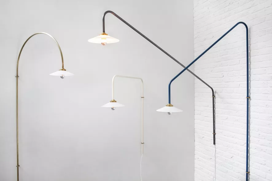 De Hanging Lamp no. 5 wandlamp staal van Valerie Objects is gemaakt van gelakt staal. De lamp is 100 centimeter hoog, en heeft een arm van 90 centimeter. Hij heeft een E27 fitting. De lichtbron wordt niet meegeleverd. De Hanging Lamp no. 5 wandlamp staal van Valerie Objects is verkrijgbaar in verschillende kleuren.