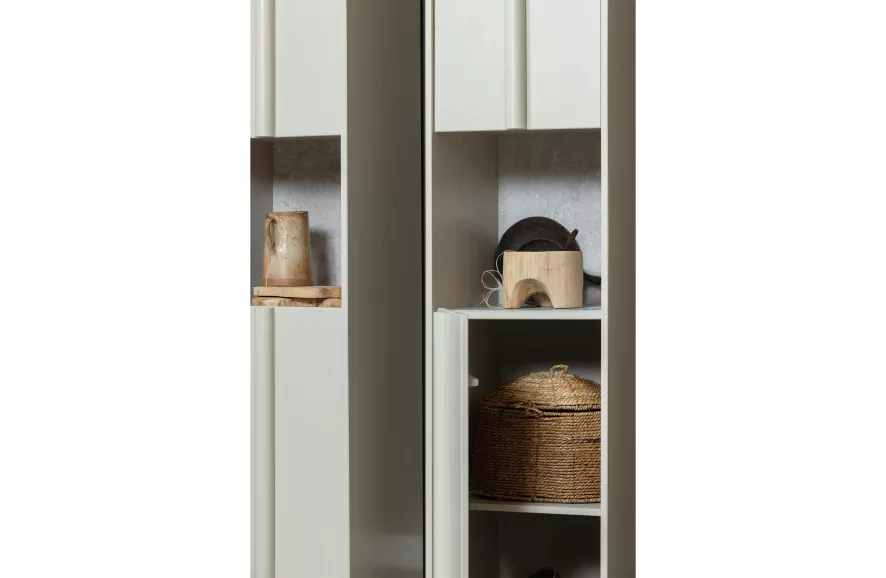 De Basu opbergkast small van Woood heeft een hoogte van 210 centimeter, een breedte van 40 centimeter en een diepte van 42 centimeter. De kast is gemaakt van FSC-gecertificeerd grenenhout en HDF plaatmateriaal.