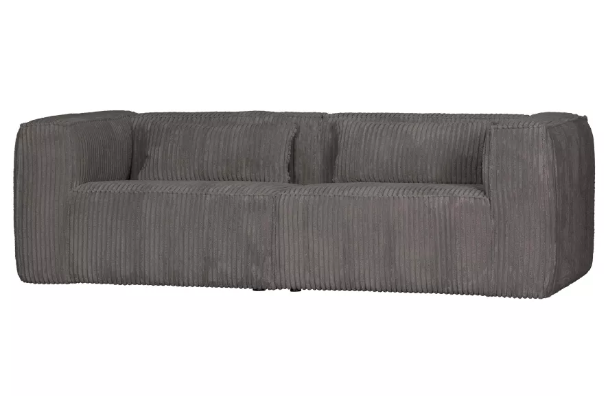 De Bean 3,5-zits bank rib van Woood heeft een breedte van 246 centimeter, een diepte van 96 centimeter en een hoogte van 73 centimeter. De zithoogte van de bank bedraagt 46 centimeter, de zitbreedte 192 centimeter en de zitdiepte 66 centimeter. De armleuningen zijn 73 centimeter hoog en 27 centimeter breed. Het frame van de Bean bank bestaat uit spaanplaat, beukenhout en dennenhout. Let op! De bank wordt geleverd zonder kussens. Deze zijn los te bestellen.