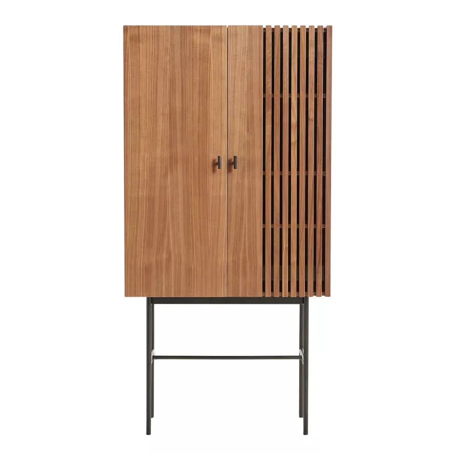 De Array opbergkast 80 van Woud heeft een breedte van 80 centimeter, een diepte van 44 centimeter en een hoogte van 160 centimeter. De opbergkast heeft een onderstel van zwartgeverfd metaal en een kast van houtfineer. De kast is uitgerust met zes verstelbare planken, zacht sluitende deuren, zwartgeverfde metalen handvaten, verstelbare poten en een muurbeugel. De Array opbergkast 80 van Woud is verschillende uitvoeringen verkrijgbaar.
