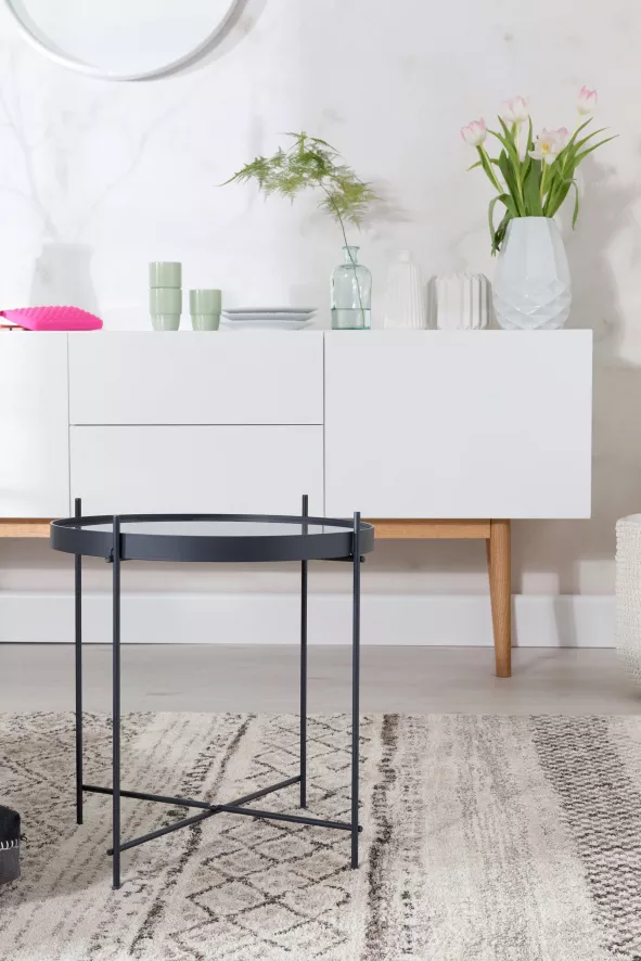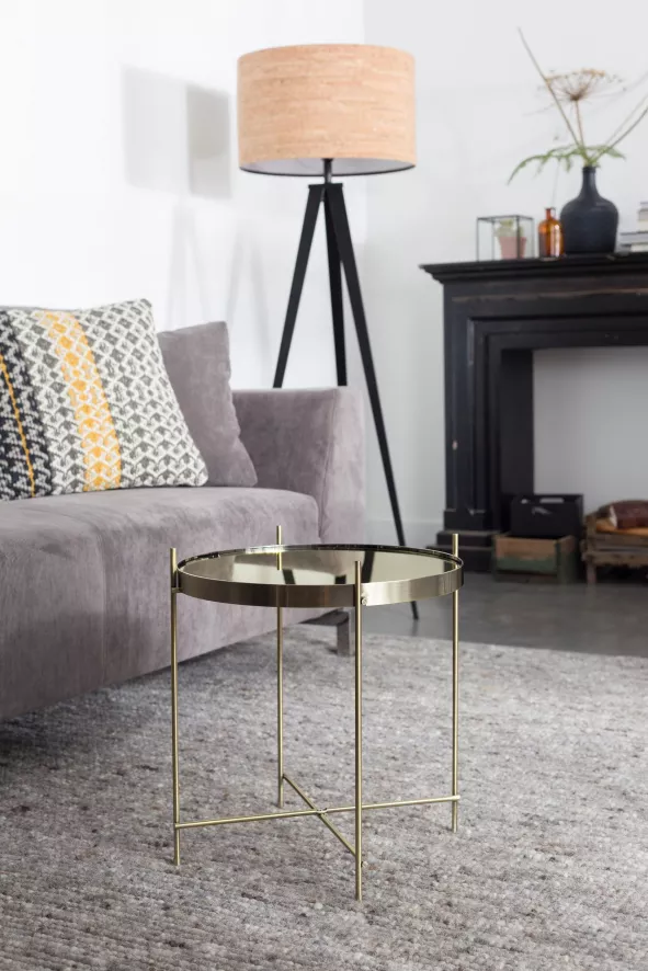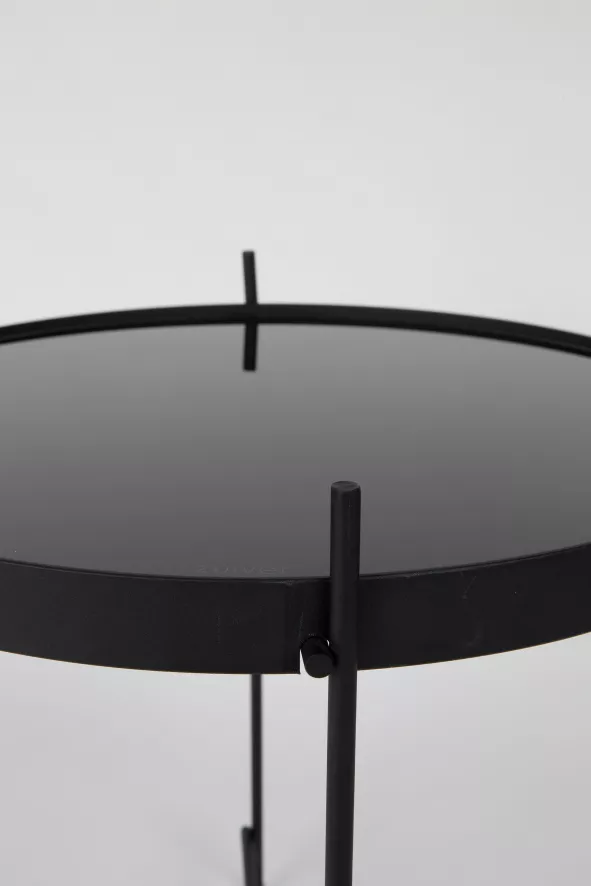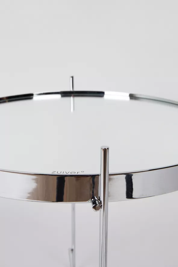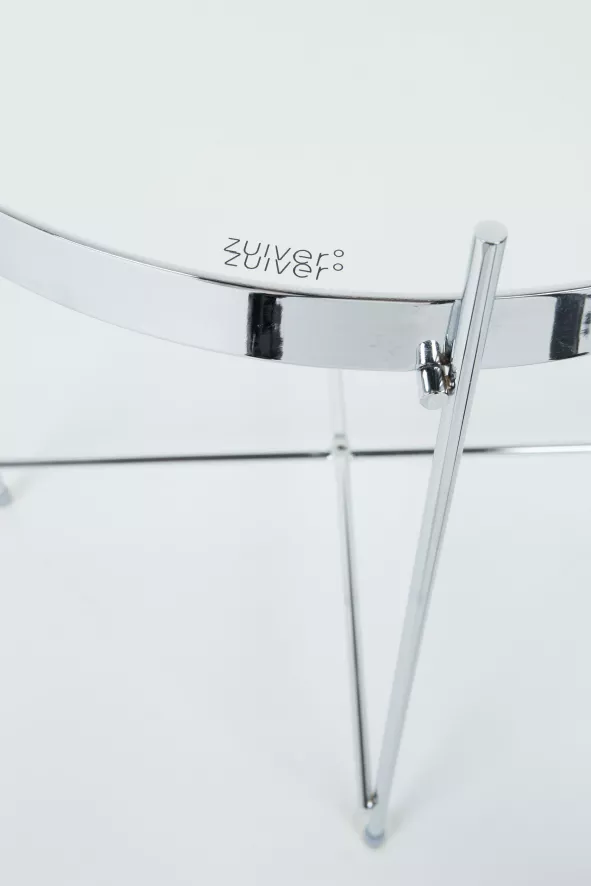 De Cupid bijzettafel van Zuiver heeft een diameter van 43 centimeter en een hoogte van 45 centimeter. In grijs, zwart en rood komt hij met een afneembaar gekleurd en gehard glazen tafelblad en een opvouwbaar onderstel. In het zilver en in koper komt hij met een afneembaar blad van spiegelglas en een opvouwbaar onderstel dat verkoperd of verchroomd is. Dit tafeltje kan maximaal 5 kilo dragen.
